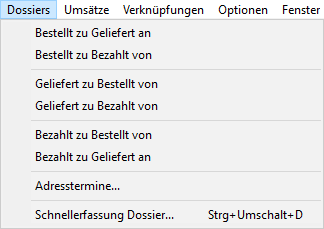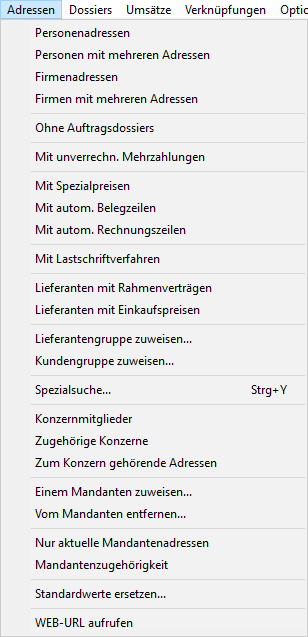 Übersicht Adressfunktionen + Informationen Adressen - Adressen Adressen - Dossiers Adressen - Umsätze Adressen - Verknüpfungen