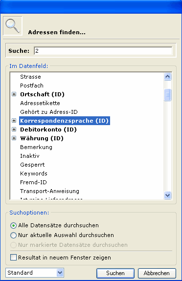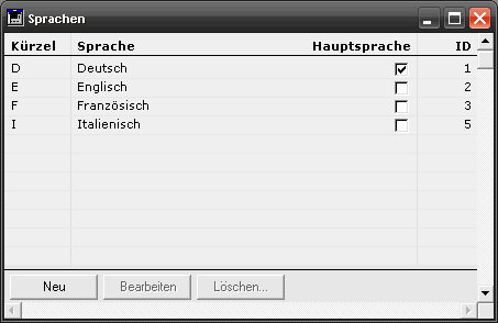 Die Adressen nach einer bestimmten Sprachen beispielsweise können "nur" zuverlässig über die eigentliche ID-Nummer (Record-Nummer) gesucht und gefunden werden. In den Systemeinstellungen " Sprachen" ist die ID in einer Spalte ersichtlich. Beispiel: Englisch = 2.