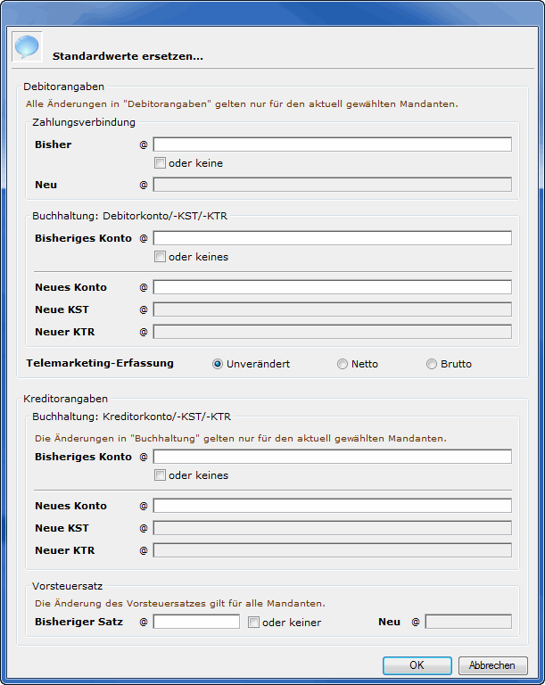 Dateien - Adressen - Adressen - Standardwerte ersetzen