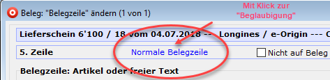 Klick auf die blauen Belegzeilen-Titel Normale Belegzeile -> Beglaubigung