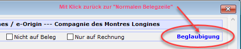 Klick auf "Beglaubigung" -> Zurück zur "Normalen Belegzeile":