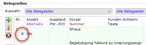 Kennzeichnung im Register Belegzeilen des Beleges: