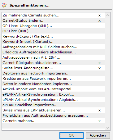 Folgende Spezialfunktionen können für Handelskammerkunden freigeschalten werden;