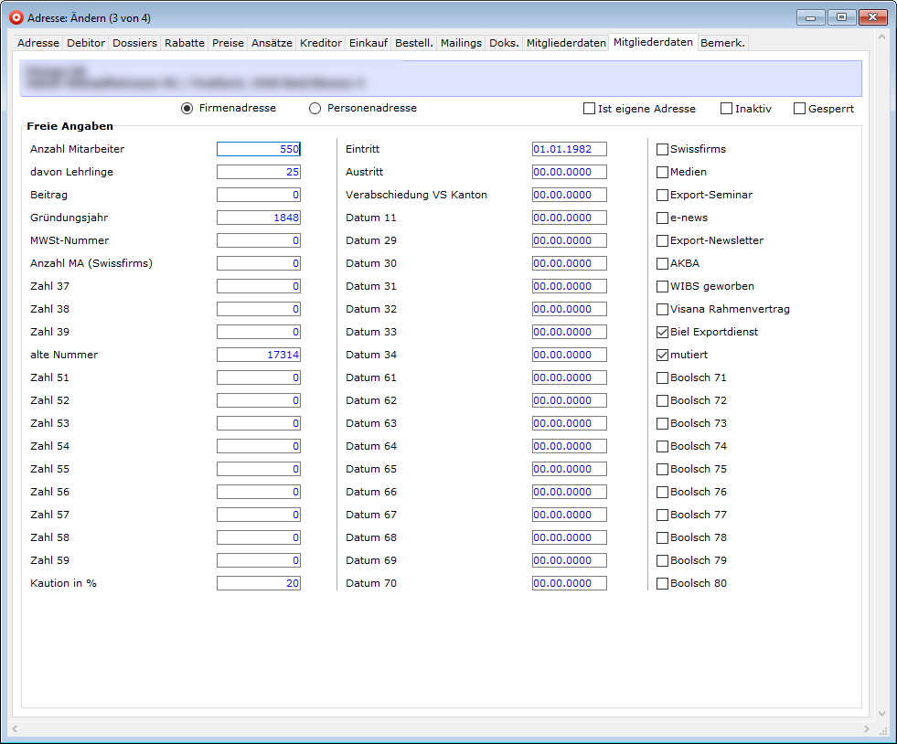 Adressen - Freies Register 1 -> Mitgliederdaten