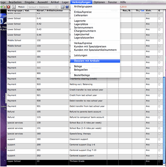 Dossier mit Artikel die entsprechenden Auftragsdossier herausfiltern!