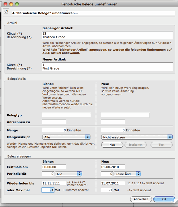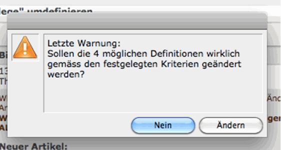 Vorgehen für das Umdefinieren von Artikeln in Periodischen Belegen