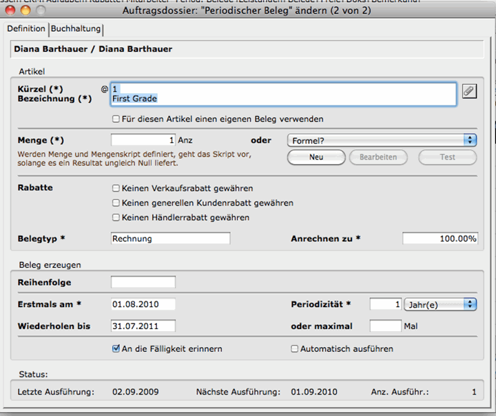 Auftragsdossier, im Register „Periodische Belege“ umdefiniert!