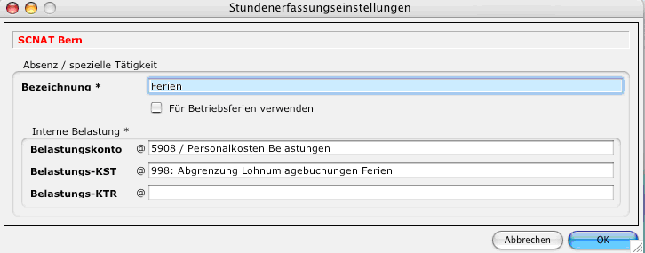 Bei den Systemeinstellungen können verschiedene Absenzen resp. Spezielle Tätigkeiten hinterlegt werden.