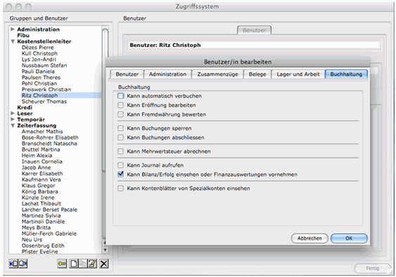 Damit ein Projektleiter seine Kostenstelle resp. seine Kostenträger auswerten kann, sind folgende Einstellungen notwendig: 2.1. Zuteilung Rechte in Zugriffsystem Im Zugriffsystem sind folgende Rechte zuzuordnen: