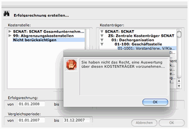 - Das Häcken bei ‚Darf nur Kostenträger auswerten‘ muss gesetzt sein