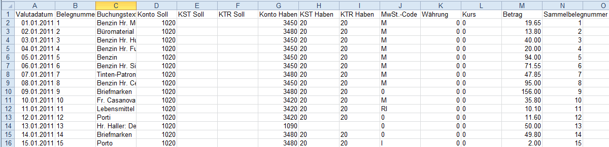 Buchungsimport Kassen- bzw. Bankbuch aus Excel