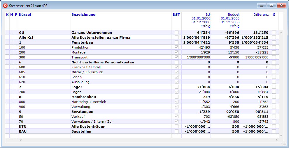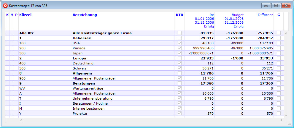 Stammdaten - Kostenträger: Kostenträger - Finanzzahlen zeigen