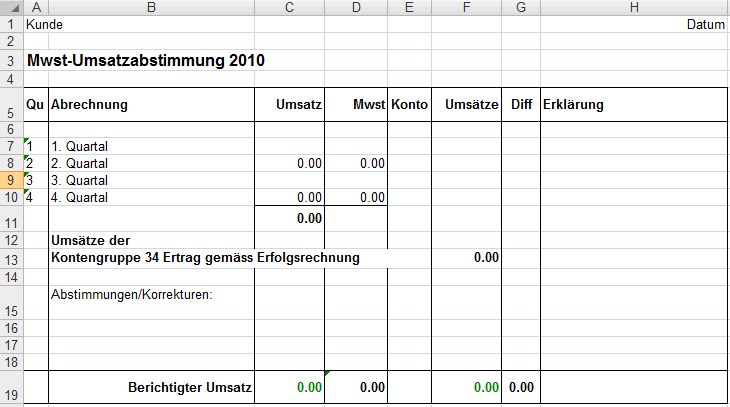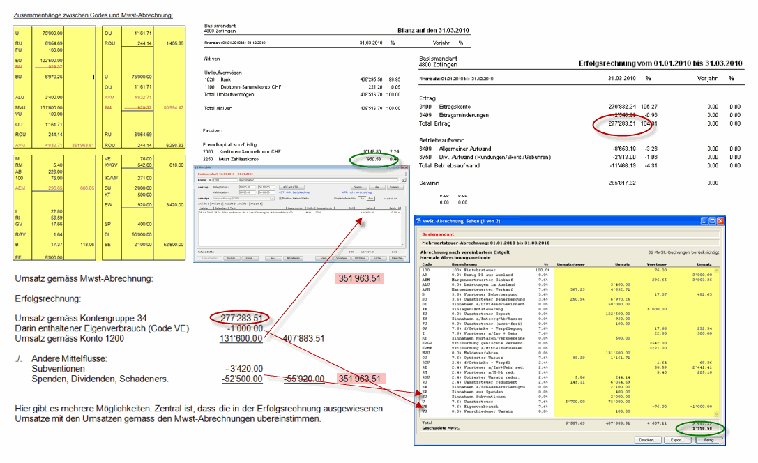 Beispiel einer Mwst-Abstimmung Beispiel gemäss Effektiver Methode Umsatzzusammenstellung über mehrere Quartale