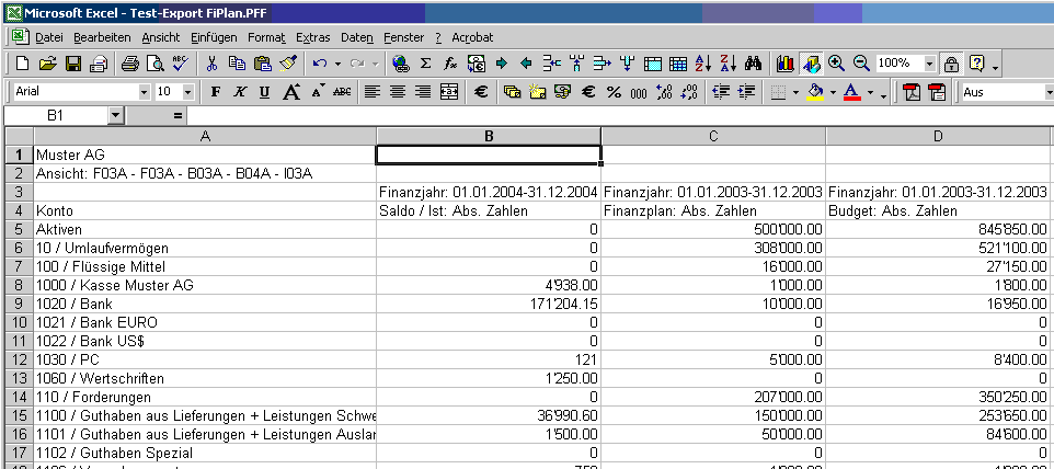 - für die weitere Bearbeitung (Budgetierung in Excel oder für Simulationen usw.) Sofern die Struktur des Exportes nicht verändert wird, nur die Zahleninhalte, dann können die in Excel geänderten Zahlen wieder mit dem Import Button importiert und gesichert werden.