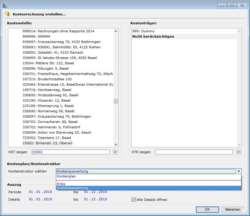 wobei hier die Kontenstruktur "Kostenauswertung" gemäss Strukturierung gewählt wird.