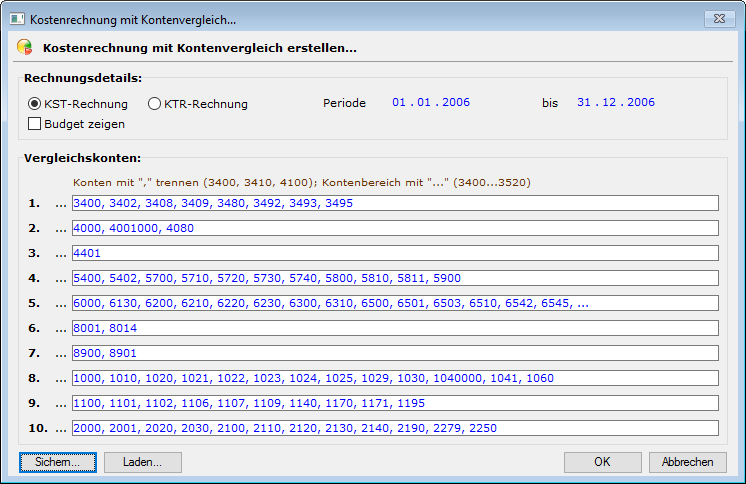 | Druckreport Kostenrechnung mit Kontenvergleich |