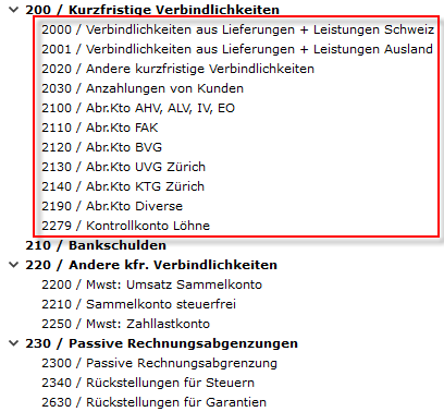 | Die Eingabe von Strukturen ist nicht möglich, jedoch eine Eingabe eines Bereichs von - bis Wird z.B. der Bereich 2000...2279 eingegeben, nimmt es die Konten, die innerhalb dieser Struktur stehen. Muss zusätzlich noch das Konto 2250 dazugenommen werden, muss es manuell nachgetragen werden (siehe das Beispiel Zeile 10). |