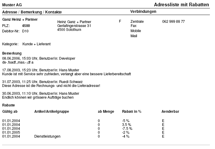Reports Konditionenblatt