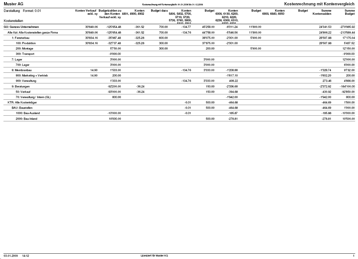 Kostenrechnung mit Kontenvergleich