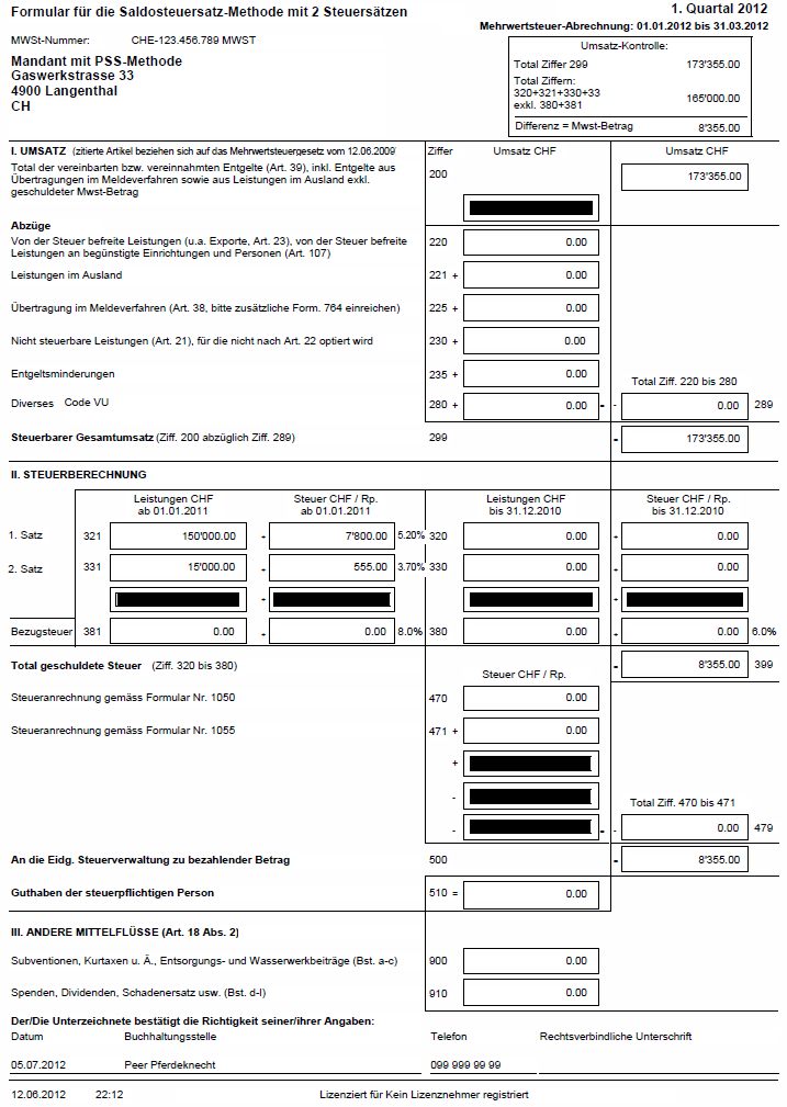 Reports Mwst Saldomethode (SSS) / Pauschalmethode (PSS)
