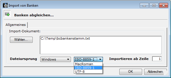 - Wählen von "Banken (Direkt - fixe Längen)"