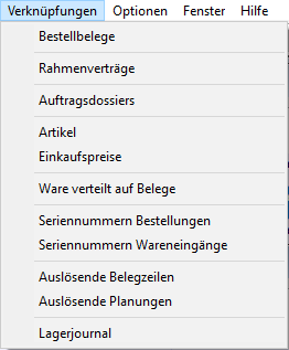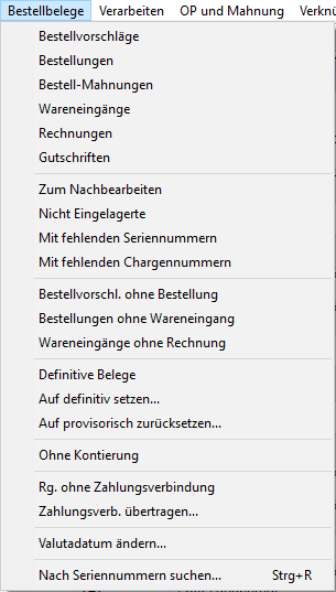 Bestellbelege Suchhilfen Es gibt eine Reihe von nützlichen Schnellsuch-Hilfen. Dateien - Bestellbelege Schnellsuche Verknüpfungen