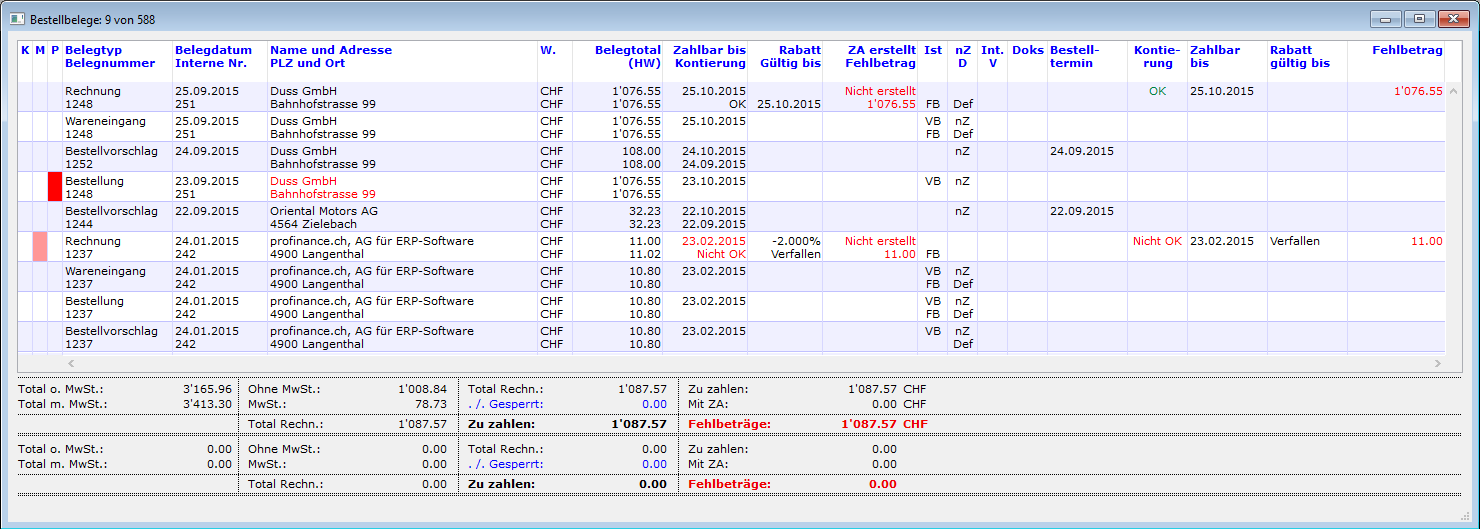 Mit der Tastenkombination "Shift+Klick" auf den Spaltentitel "Ist" kann festgelegt werden, ob die Vor- und Folgebelege angezeigt werden sollen. Siehe Beschreibung hier. Man kann durch "... nicht zeigen" das Laden von und Scrollen in Tabellen beschleunigen.