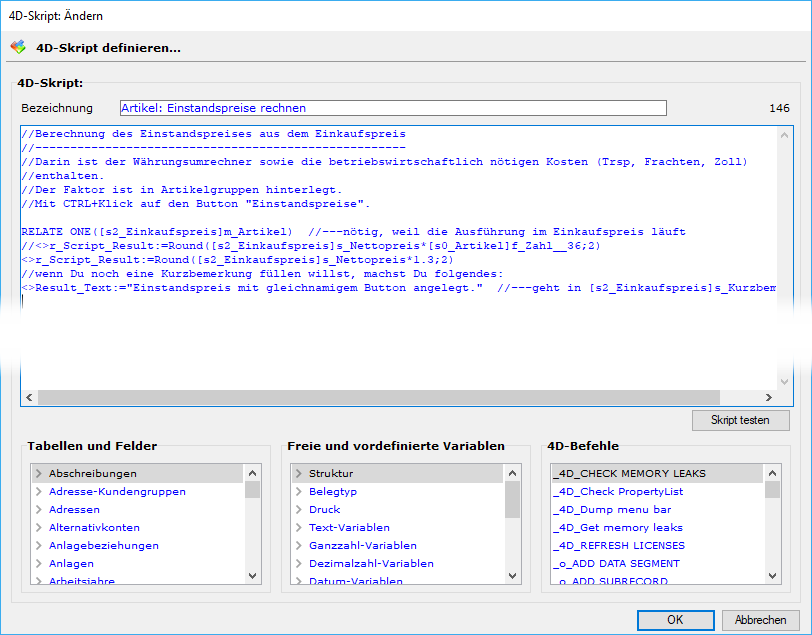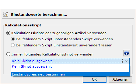 Daraus ist ersichtlich, dass man zum Festlegen des Einstandswertes ein Script erstellen und anwenden kann: