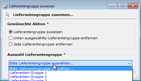 - oder über den Adress-Output durch Markieren der gewünschten Adressen und mittels Menüpunkt Adressen - Lieferantengruppe zuweisen
