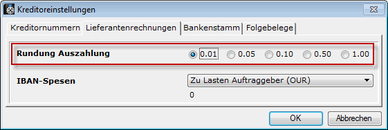 Bei den Auszahlungen selber, wird die Rundung für alle Währungen gemäss Systemeinstellung Kreditoreneinstellung vorgenommen: