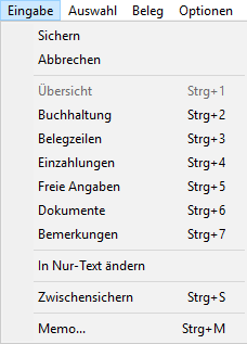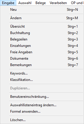 Dieser Menubefehl ist in allen Tabellen-Outputs vorhanden und kann aufgerufen werden, um Auswahllisteneinträge zu ändern. |