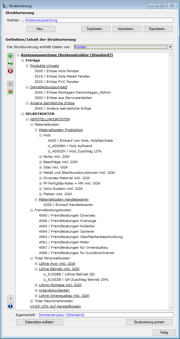 | Eigenschaften | Steht "irgendwo" in den Eigenschaften das Wort "Standard" wird diese Struktur im Dialog standardmässig vorgeschlagen. | |||