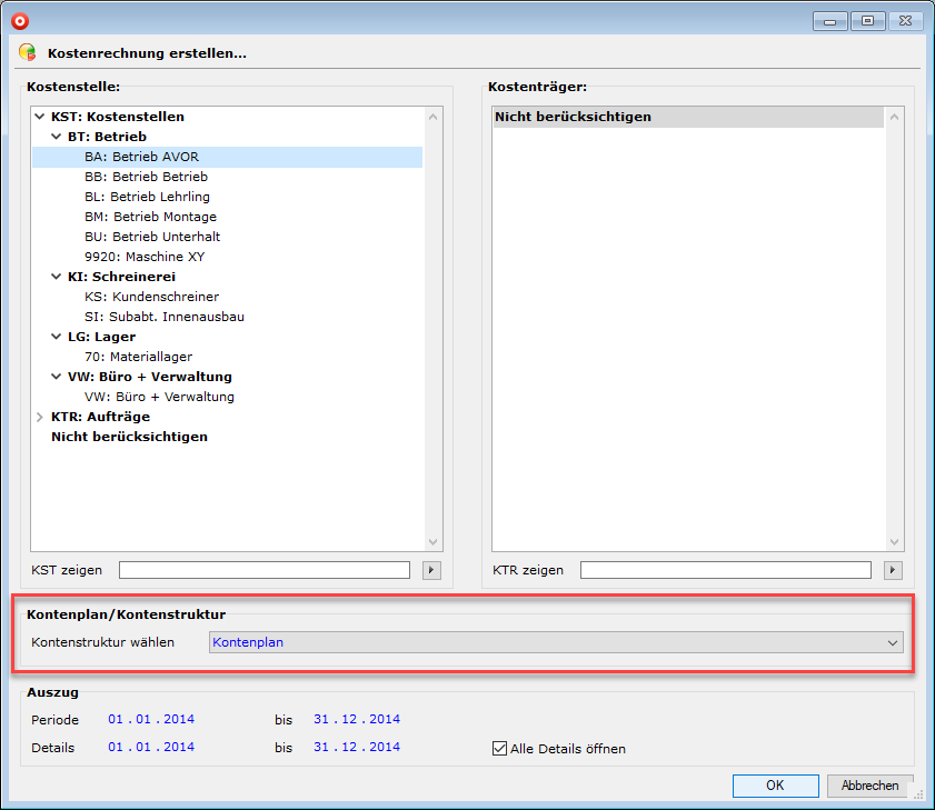 Beispiel: Kostenauswertung eines Produktionsbetriebes