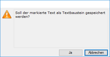 - Ein geänderter oder neuer markierter Text kann damit in die Tabelle Textbausteine überführt werden.