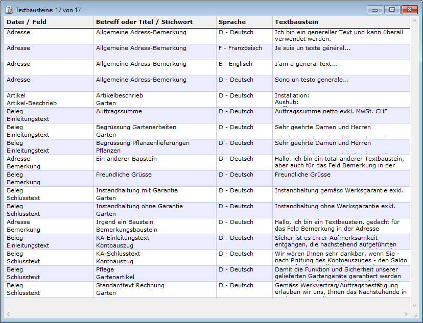 Verwalten von Textbausteinen