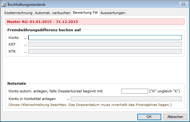 Einstellungen Fremdwährungsbewertung (Buchhaltungsstandards)