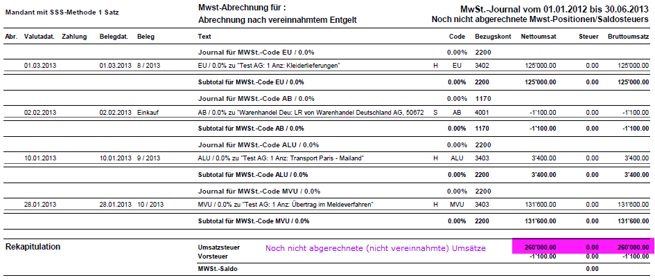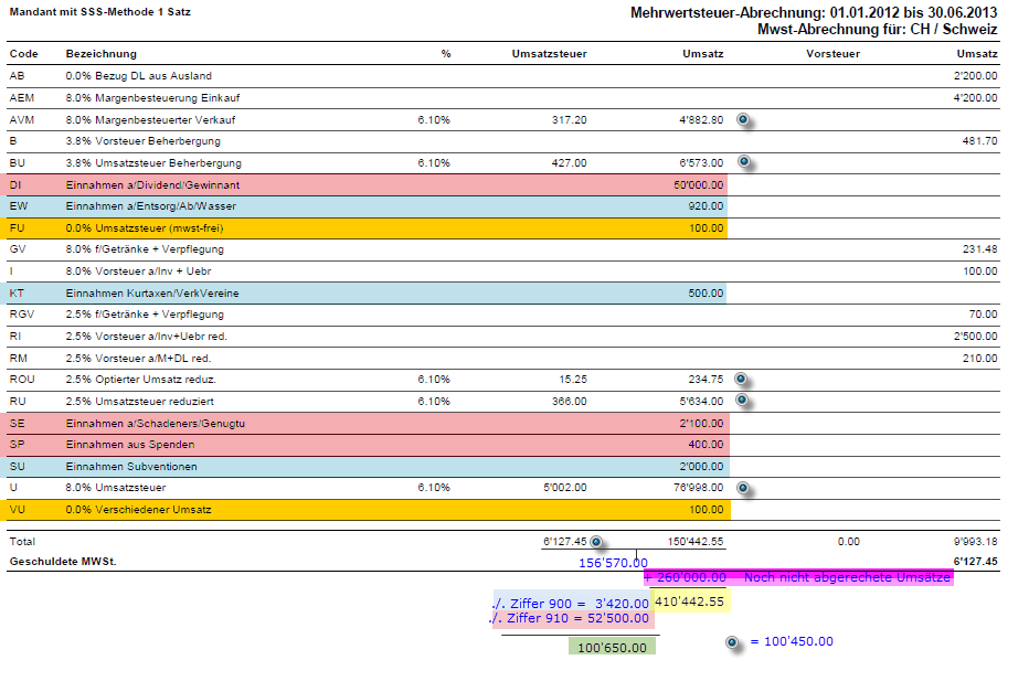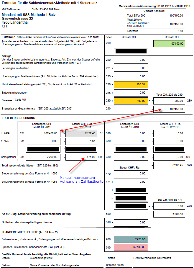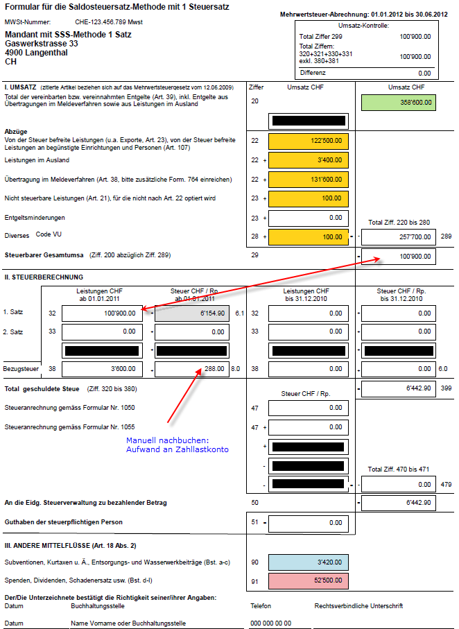 Umsatzabstimmung Saldomethode mit 1 Saldosatz