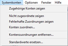 Zu den Systemkonten gibt es spezielle Menüpunkte:
