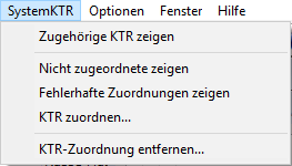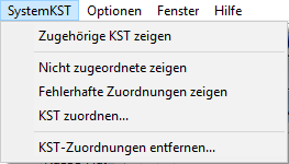 Menüpunkte zu Systemkonten, -KST und -KTR