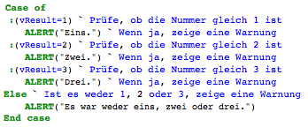 Mit der Struktur Case of...Else...End case kann die Methode wie bei der Struktur If...Else...End if zwischen alternativen Aktionen wählen.