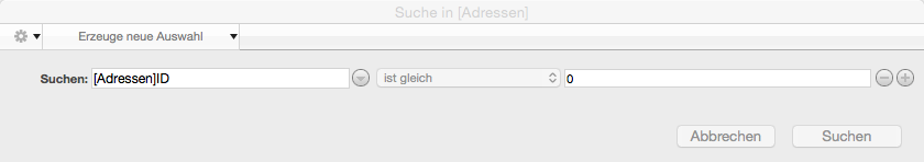 QUERY([People];[People]Name="a@";*) \* weist auf weitere Suchkriterien hin QUERY([People];|;[People]Name="b@") Ohne * endet die Definition der Suche, der Suchlauf startet