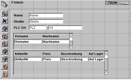 Sobald die Formulare für Mitarbeiter und Artikel angezeigt werden, sind die verknüpften Datensätze für beide Tabellen geladen und darin zur aktuellen Auswahl. Dagegen werden die verknüpften Datensätze nicht geladen, wenn ein Datensatz für die Tabelle [Firmen] per Programmierung gewählt wird. In diesem Fall müssen Sie den Befehl RELATE MANY verwenden.