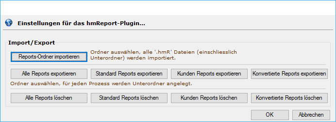 | Report-Ordner importieren | Exportierte hmReports lassen sich importierten. |
