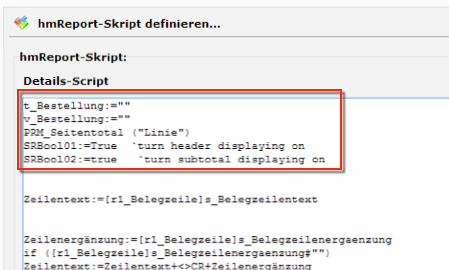- Das Script im Detailfuss 1 kopieren und löschen.