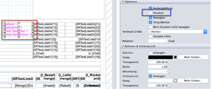 Schritt 7: Hilfetexte ausblenden Eventuell: Hilftexte, meist in pink, markieren und Property „Drucken“ auf False setzen.