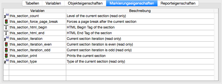 Markierungen in hmReport sind die Sections/Bereiche, d.h. Der Report ist in unterschiedliche Markierungen unterteilt, die für das Drucken wichtig sind.