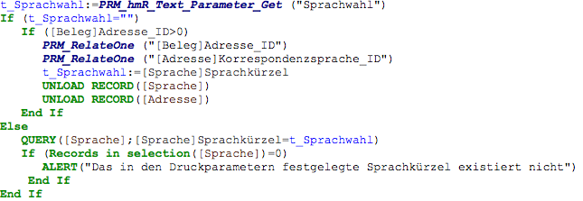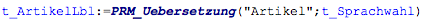 PRM_Uebersetzung Die in der Tabelle "Uebersetzungen" hinterlegten fremdsprachlichen Texte können mittels "PRM_Uebersetzung("..";..) übernommen werden: Im vorliegenden Fall wird die Sprache ab der Adresse gezogen und zwar wie folgt:
