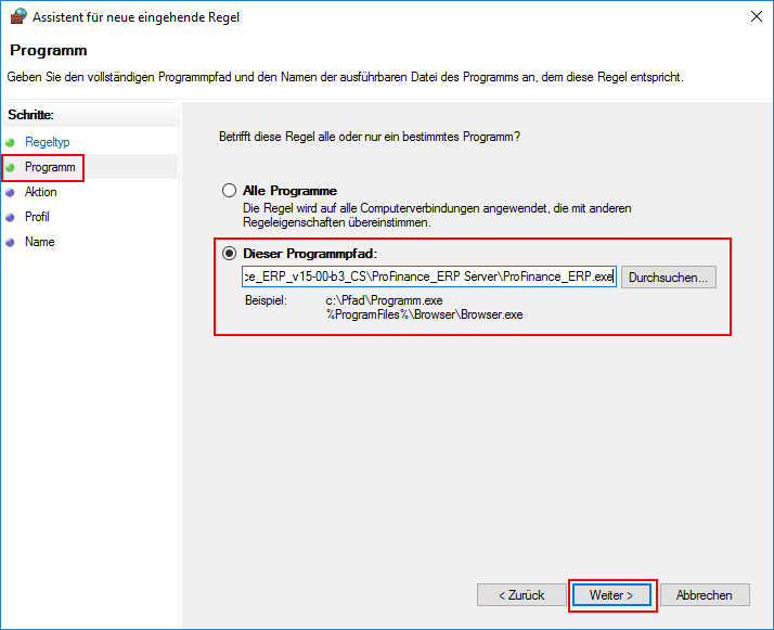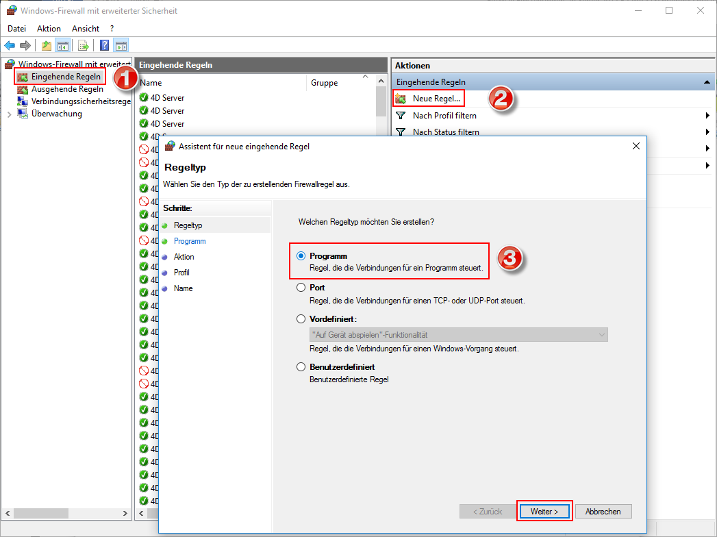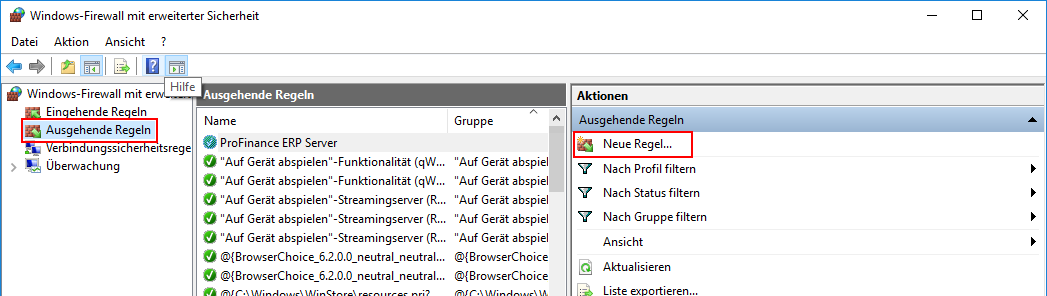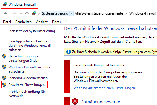 Öffnen Sie bitte unter den Systemeinstellungen - Windows-Firewall - Erweiterte Einstellungen