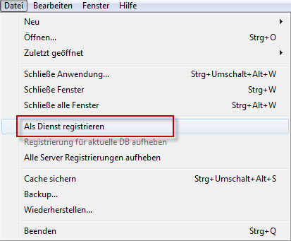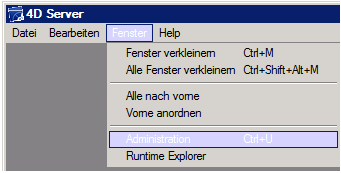 Den 4D Server zuerst konventionell via Doppelklick auf die EXE-Datei starten. Nach erfolgtem Start unter Menüpunkt Datei