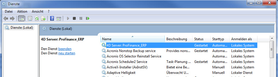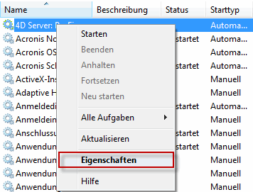 4D Server ... markieren und den Dienst starten.